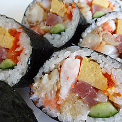 2月3日の節分は恒例の恵方巻き。南南東を向いて無言で喰らうのだ。 「今年もふたり元気で過ごせますように!!」 我が家の恵方巻きはいつもの 「美登利寿司」です。相変わらず旨いぜぇ〜。 |