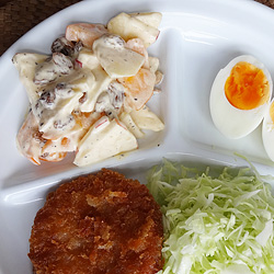 工事期間中、施主さまから毎日のように手づくりのお惣菜を頂いて帰り、いつになく充実した夕食だった我が家。本当にありがとうございました。デジタルカメラで撮影するんだけど、夜の照明では美味しそうに撮れなかった〜。残念。 |